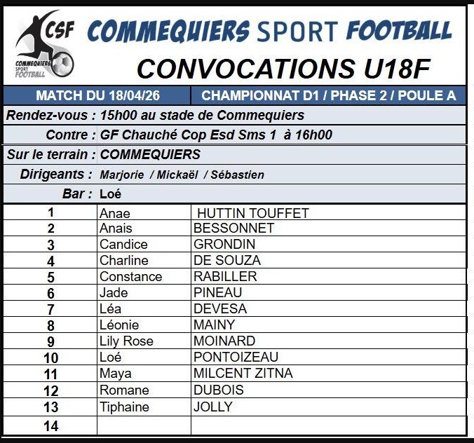 Équipe Date Horaires Adversaire amical championnat Resp. salle Resp. buvette